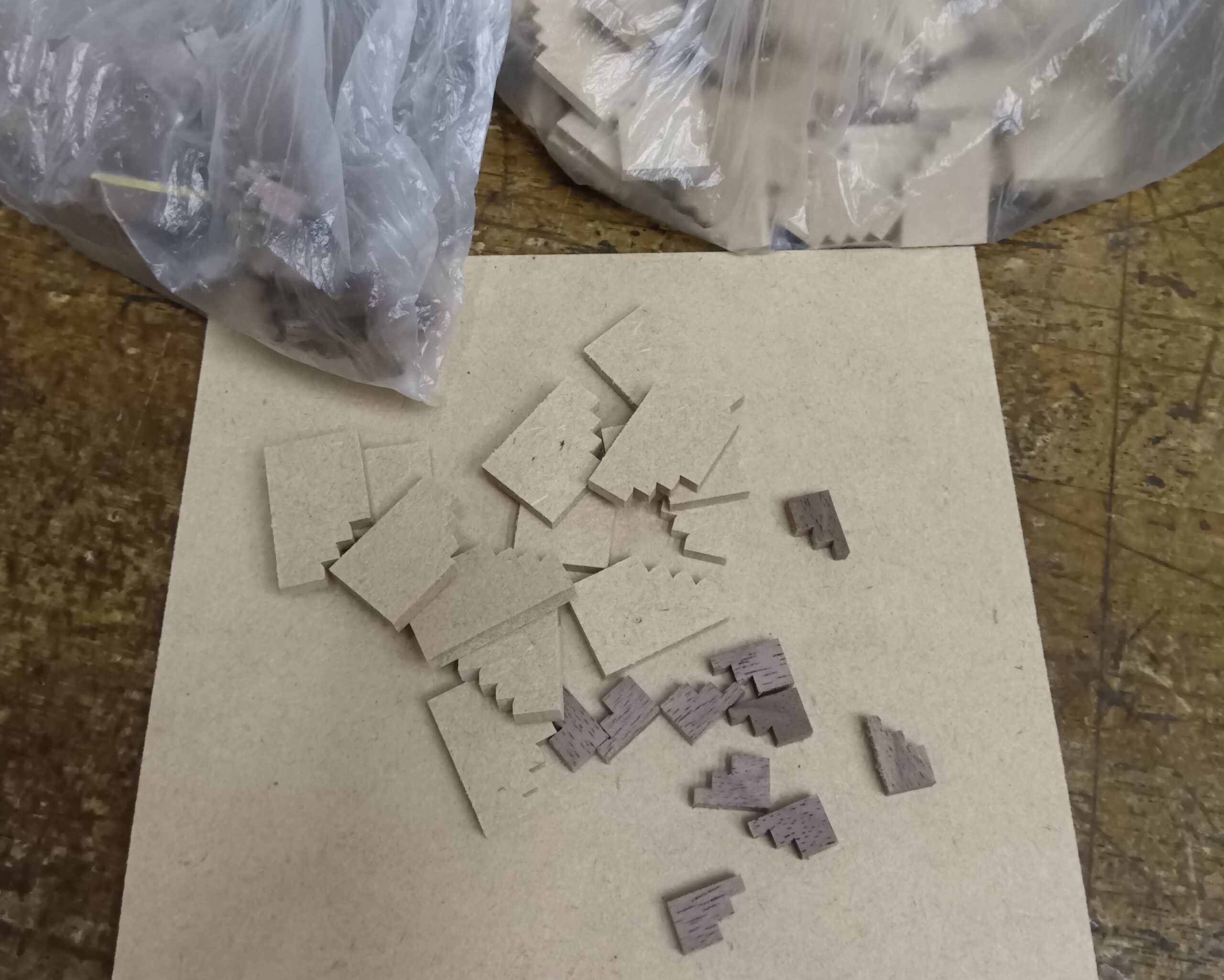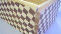 For the side panels, I will either use the same Ichimatsu Yosegi as this time or the two-color Ichimatsu Yosegi that I made before. For the top and bottom panels, instead of traditional Yosegi, I am thinking of using natural wood or another design. One reason is that I recently made many spare parts for the 27-steps boxes, so I can use them now.