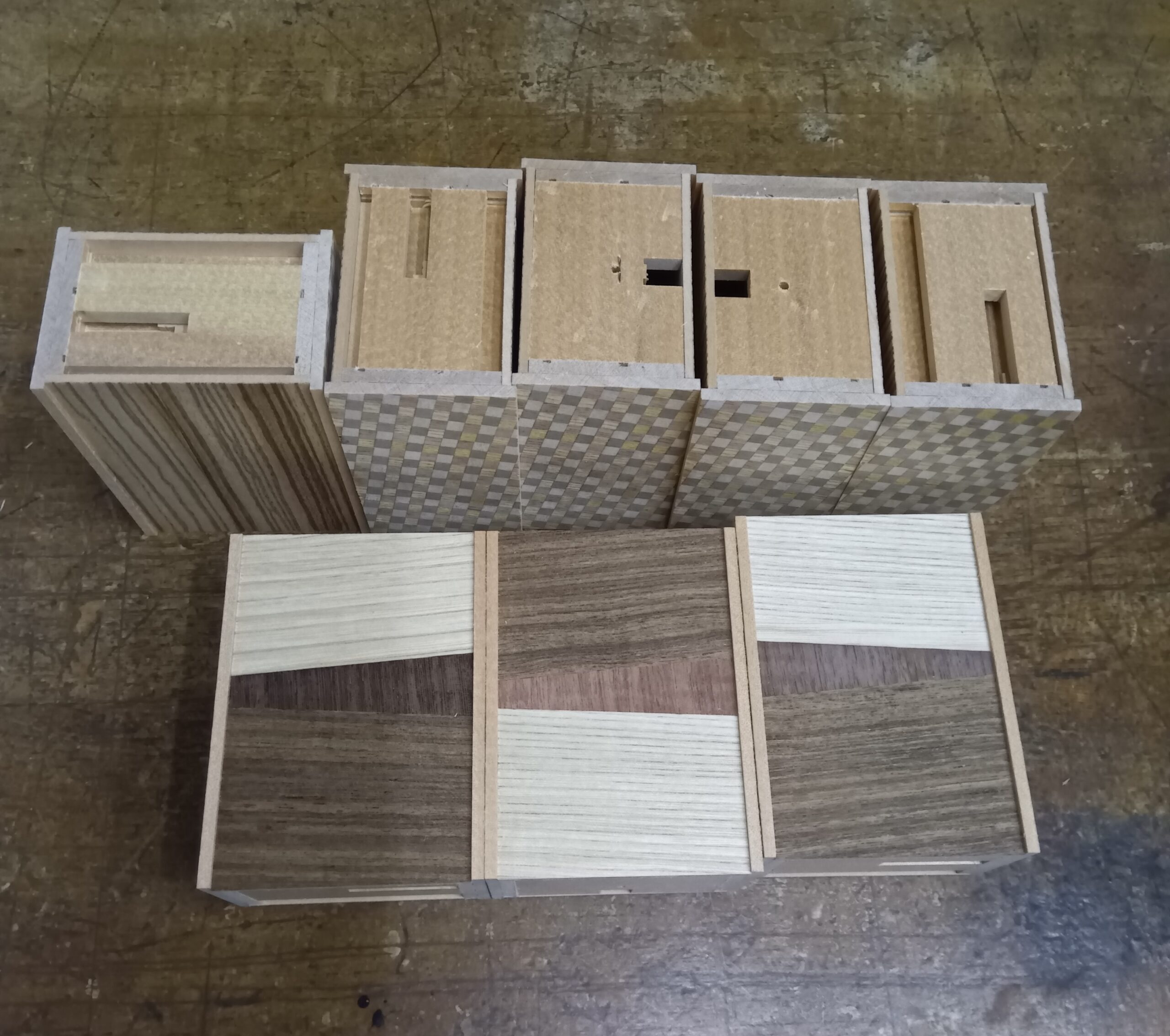 Most of this batch is for store orders, but I plan to keep a small number for my own stock as well. They are not traditional yosegi, but this is the first time I’ve made this style with drawers, so it’s fun. Of course, I’m also making the usual zebrawood types.
