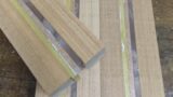 Today I prepared the materials for the side panels and worked on the top and bottom panels. They are still in the preparation stage. The photo shows the ichimatsu-pattern side panels and the solid-wood top and bottom panels that I will use this time. The top and bottom panels are still in block form, but once they dry, I will slice them into several sheets. I plan to use these top and bottom panels for about two-third of this batch since I’m making only a small number. In the photo, you can see poplar wood cut into three strips with walnut in between, which has a slightly different color than usual. I used poplar before, but it has been a while. It looks similar to light-colored magnolia wood (Ho wood), but it is a little harder than magnolia—though still generally a soft wood. I’m thinking about cutting this block into boards and embedding a bit of another wood into them. This is a method I used often about 20 years ago. I also still have some solid ichimatsu yosegi left, so I plan to use that too. It’s a bit experimental, but even though it has been a long time, I still remember well how to do this technique. It’s like an expanded version of the “line pattern” design I created by embedding thin wooden lines randomly—this was the design that won an award at a Japanese traditional craft exhibition about 25 years ago (in 1999). It was highly praised as a box design unlike anything seen before. Even though it felt Japanese, it was different from traditional patterns.