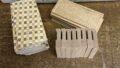 So today, I thought the rain from yesterday had stopped, but around noon it started raining again. During a short period of better weather in the morning, I worked on making the Aruki sliding panels for the 4-sun 14-steps puzzle boxes. However, even though the rain had stopped, the humidity was still high, so I did not attach them yet. Of course, working in high humidity can be a concern, but the Aruki panels are designed with some measures to handle this. One of these is the direction of the wood grain. In Japanese puzzle boxes, the grain of the Aruki panels and the axis panels is set horizontally, meaning the grain runs parallel to the ground. Wood tends to expand and shrink across the grain, but changes much less along the grain. The axis panels are made and attached in this direction, which helps prevent the width of the box from changing. The Aruki panels are also made in the same way, so even the very fine dimensions created during production are less affected by changes in weather.