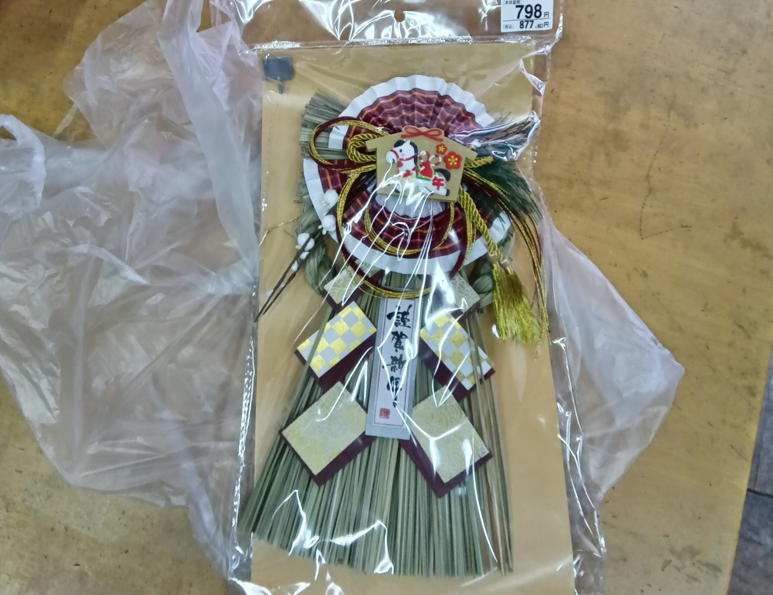 Since it is the end of the year, I also bought New Year decorations (Shogatsu-kazari) for my workshop the other day. By the way, as you can see in the photo, it costs 877 yen including tax. At this time of year, supermarkets and home centers everywhere sell many kinds of decorations, and many people buy them. Normally, these decorations are placed at the entrance of a building, on the outside, but there are also versions made for cars or for gates instead of buildings. It is a little difficult to explain what these decorations are, but they come from old Japanese customs. They are not exactly the same as Buddhist religious items. I feel they are more like a cultural tradition that has become part of everyday life, without strong religious meaning for most people. Still, the original idea is that the decoration is a sign to welcome the New Year’s god. So in that way, it is connected to a form of Japanese belief, which includes Buddhism. However, today the meaning is broader, and people see them more as a New Year decoration to celebrate the season. Because of that, many modern designs are available, including ones with manga or anime characters, or even Disney characters. The one I bought is not so unusual, but it is quite cute. It keeps the traditional New Year decoration style, but it also has a character of next year’s zodiac animal, the horse. The horse is made in a very cute way. These decorations are not put up on New Year’s Day, but a little earlier, sometime in December. The exact timing depends on the region. This year, I plan to put mine up on the 26th (Friday). In my area, it is normal to keep the decoration displayed until January 7, which is called “Matsu-no-uchi.”