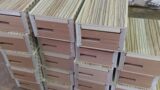 Today, I mainly worked on making the 2-sun boxes with the 7-step mechanism. I made the Aruki panels, attached them, and then glued on the top and bottom panels. For this batch, all the top and bottom panels are made with traditional yosegi designs. The overseas shop order is for a combination of traditional yosegi and walnut wood, but I’m also making a few extra for myself using Agathis wood for the side panels. The photo shows me attaching the top and bottom panels.
