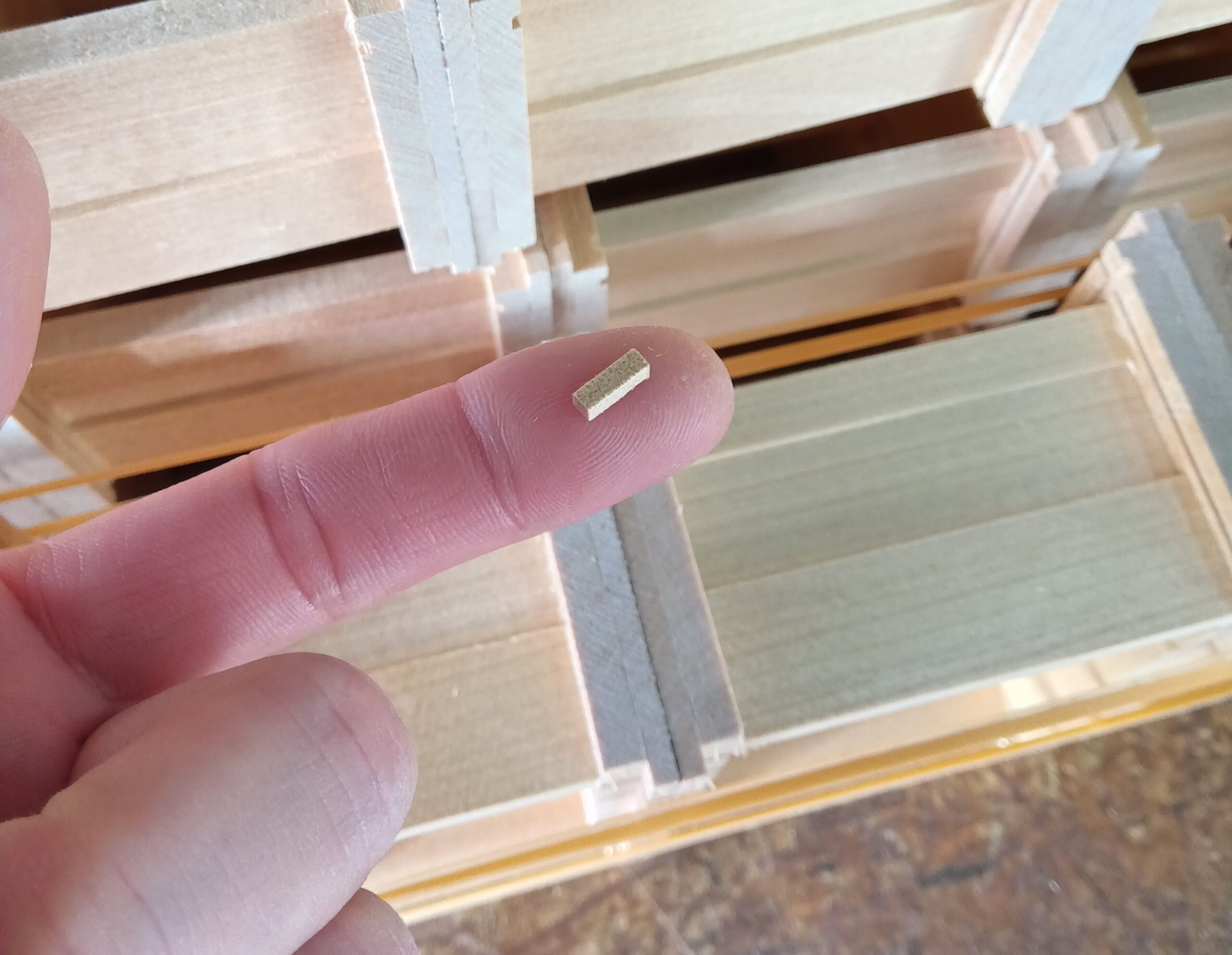 This afternoon, I went to my workshop and did a little work and took care of some tasks. I am currently making 5-sun nested puzzle boxes. Yesterday, I assembled the frame panels and attached the small internal parts. Because this is a 14-steps mechanism, there are three types of internal parts, and their shapes are simpler compared to mechanisms like 27 steps. There are many different ways to make this part of a puzzle box, but when attaching the parts later like this, the exact position is very important. About thirty years ago, the puzzle boxes I studied had marks showing where these parts should be attached. Small wooden pieces like the ones in the photo were glued onto those marked positions. I no longer make these marks. Instead, I look at the length of each part and attach them by feel. Of course, this means that they are not always placed in exactly the same position. Sometimes there can be a difference of about one millimeter. Even so, the mechanism still works well because there is a little “play” built into it. This “play” means a small amount of looseness or tolerance in the mechanism. Since wood expands and contracts, this kind of allowance is necessary. Without it, the mechanism would quickly stop moving. This way of thinking is used in many parts of making these Japanese puzzle boxes.
