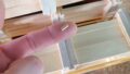Even in these unsettled conditions, today felt a bit restless, but I worked on making the Aruki moving panels for the 5-sun 14-steps Japanese puzzle boxes that I am currently producing. The air is very dry, which makes it a good time for this kind of work. The photo shows the three different types of Aruki panels used for this box. The way the Aruki parts are made is very delicate, so I am always careful when choosing the wood. It is hard to see in the photo, but for the Aruki used in the front sliding panel, I try to use a softer part of the wood. All of the boxes are made from agathis wood, but the quality of agathis varies depending on the part of the tree. Some areas are hard, and others are soft. From these, I carefully choose the softer sections to use.