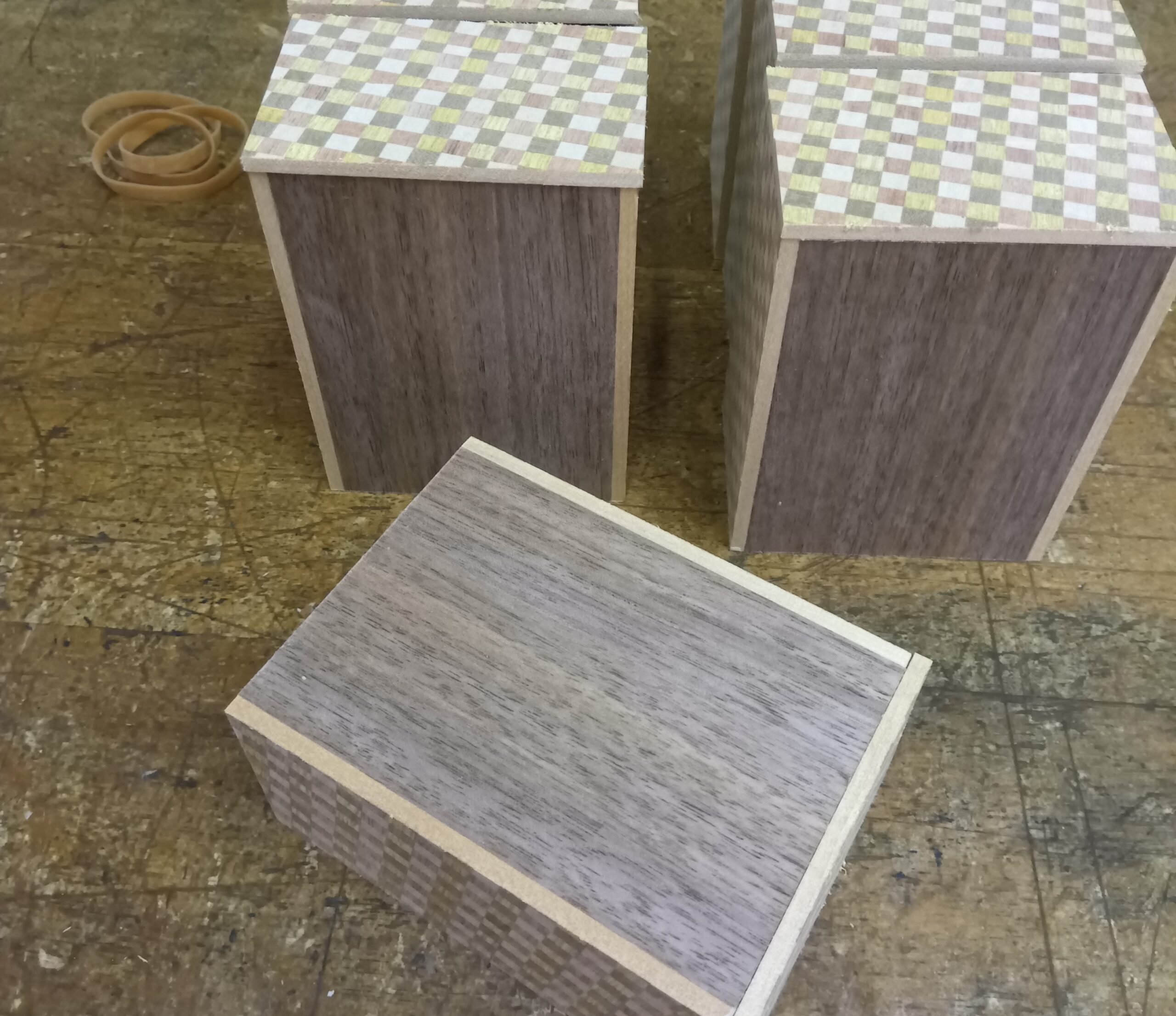 Today I prepared the boards with Yosegi patterns that will be used for those puzzle boxes. Once I start making them, I’ll write about it again.